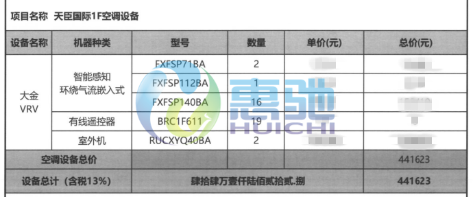 項目內容:大金空調 SkyAir Multi系列  VRV-D VRV-X7系列中央空調  VRV X新風處理機全新風集控系統安裝項目